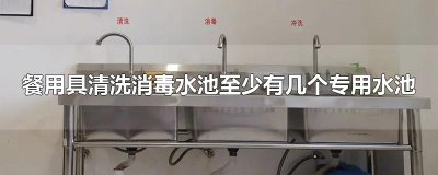 - 餐用具清洗消毒水池至少有几个专用水池 三个,分别是预洗池、清洗池、消毒池。别用于餐具和工具洗涤剂清洗、清水冲洗、浸泡消毒。餐用具的清洗是消毒的基础,清洗可除去附着的...