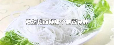 - 粉丝和面条哪个更容易胖 吃面条比吃粉丝更容易胖,因为从热量来对比,每100g的面条热量大约为110大卡,而每100g的粉丝热量大约为100大卡,所以吃面条比吃粉丝更容易胖。 粉丝和面条...