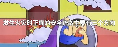 - 发生火灾时正确的安全疏散主要有三个方向 主要有三个方向,分别是向下(可以跑到地面)、向上(可以爬到屋顶)、向外(可以逃到阳台)。当发现楼内失火时,切忌慌张、乱跑,要冷静地探...