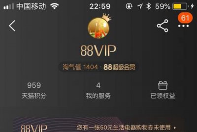 - 88vip,天猫88vip多少钱才回本? 天猫88vip多少钱才回本 天猫88VIP是天猫APP给信用比较优质的用户提供的一项会员福利。其中有优先退货专属客服等权利。还带有其他一些平台的会员权利。...