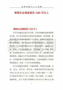 - 寒假社会调查报告范文,寒假社会调查报告2000字 大学生