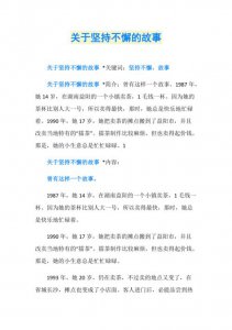 - 坚持不懈的故事(4个关于坚持不懈的名人故事) 司马光警枕励志司是个贪玩贪睡子,为此他没少受的责罚和同伴的嘲笑,在先生的谆谆下,他决心改掉贪睡的坏毛病,为了早早起床,...