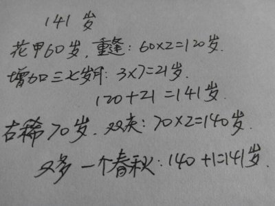 - 花甲重逢增加三七岁月是多少岁(答案是141岁)