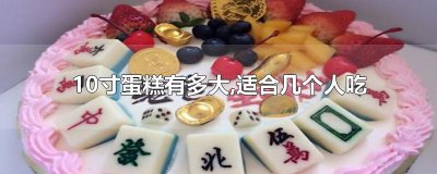 - 10寸蛋糕有多大,适合几个人吃 10寸蛋糕的直径是10英寸,一英寸等于2.54厘米,所以10寸蛋糕的直径约为25.4厘米,一般适合8到10人食用。现在很多人过生日或聚会都会购买一个蛋糕来庆祝...